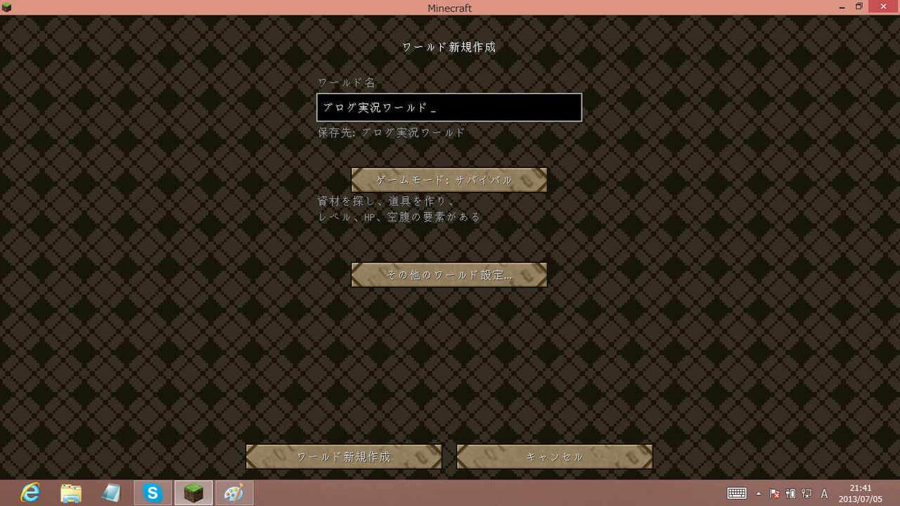 ワールド名はブログ実況ワールドってことで( *´艸`)